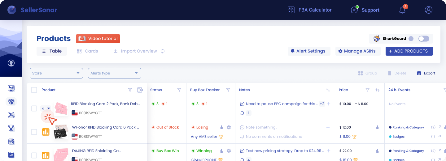 A quick look at how SellerSonar helps sellers track products, listing status, pricing, and Buy Box changes