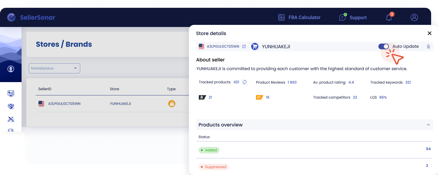 A quick view of seller details, tracked products, and suppressed listings in SellerSonarIf an unfamiliar ASIN appears in your account, use this simple checklist: