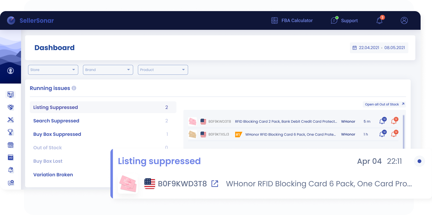 SellerSonar helps sellers spot unexpected ASINs, track listing changes, and catch suppression issues early, making catalog anomalies easier to investigate before they turn into bigger operational problems.